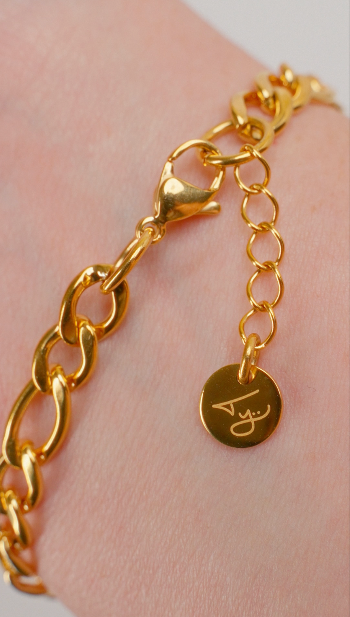 Bracelet: 1- Gold-plated stainless steel, 7 inches and extension is .5 inches.